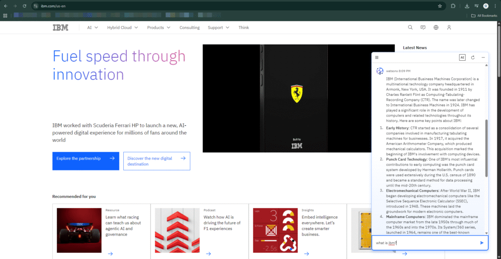 IBM.com administering knowledge through a chatbot