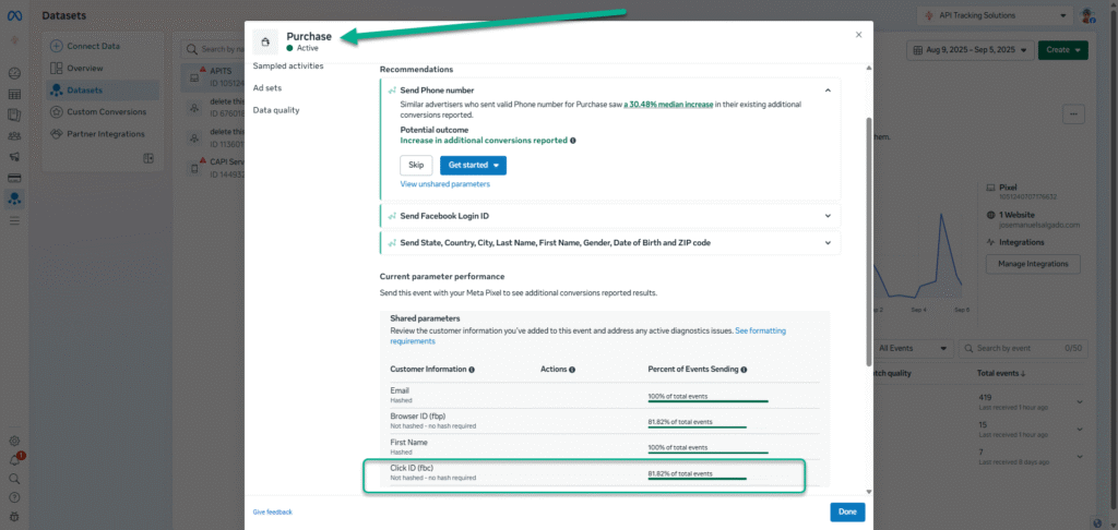 a few instants later I can see the event arriving server-side on the FB Events Manager